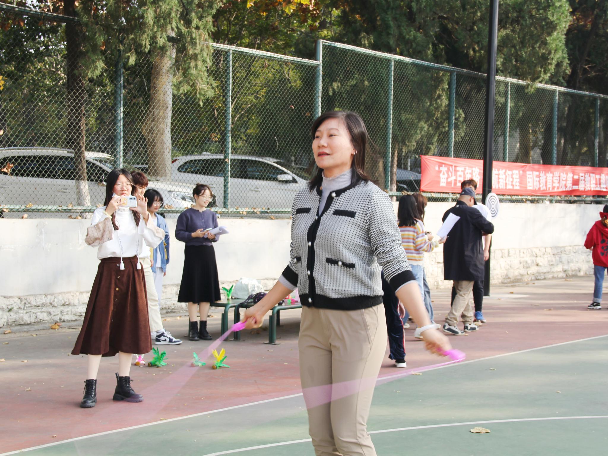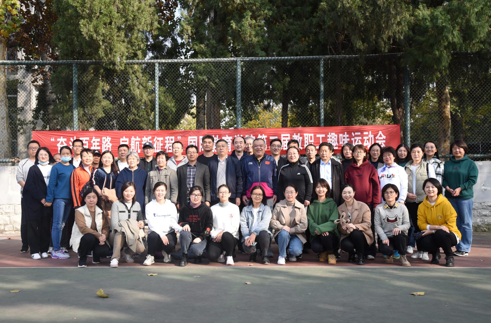 2021年11月4日下午,国际教育学院“奋斗百年路,启航新征程”第二届教职工趣味运动会在千佛山校区篮球场举行。校工会主席陶务端、校体育委员会委常务副主任郭延文、公安处副处长王章林等领导同志出席活动,学院全体教职员工参加比赛。