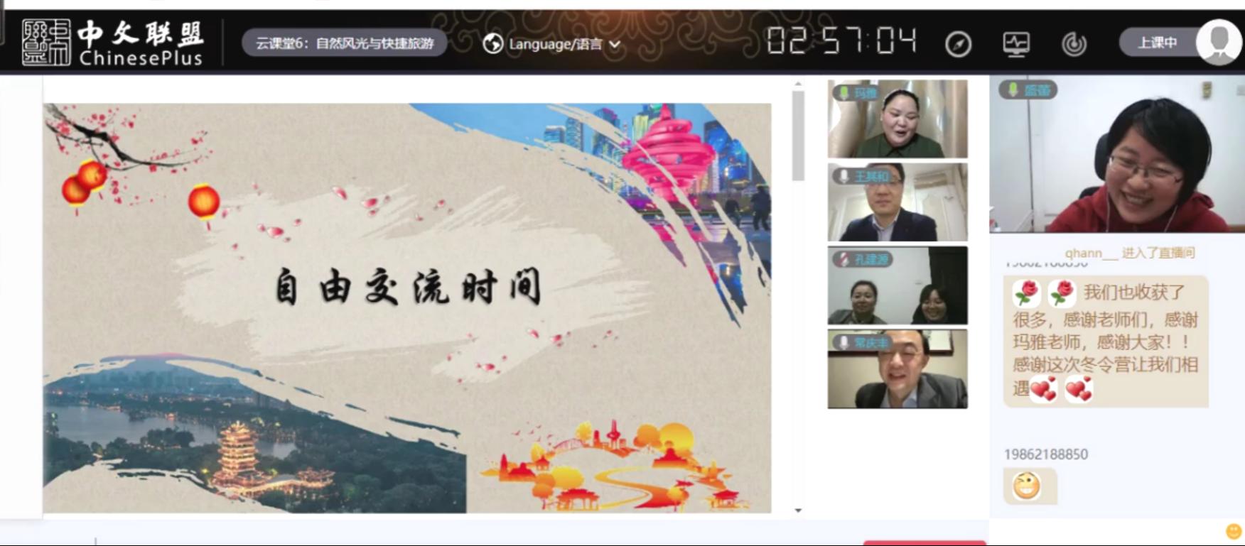 山海无阻,情意真挚,距离没有减少师生对教与学的热情。分布在世界各地的师生们,在课程学习交流中通过屏幕心心相印、互动有加,关系日益融洽。营员们通过线上的语言学习和文化体验,在游山玩水中了解在中国旅游的小常识,增加了对中国民俗、自然风光及人文景点的认知体验,从而达到了语言学习和文化交流的双重目标。
