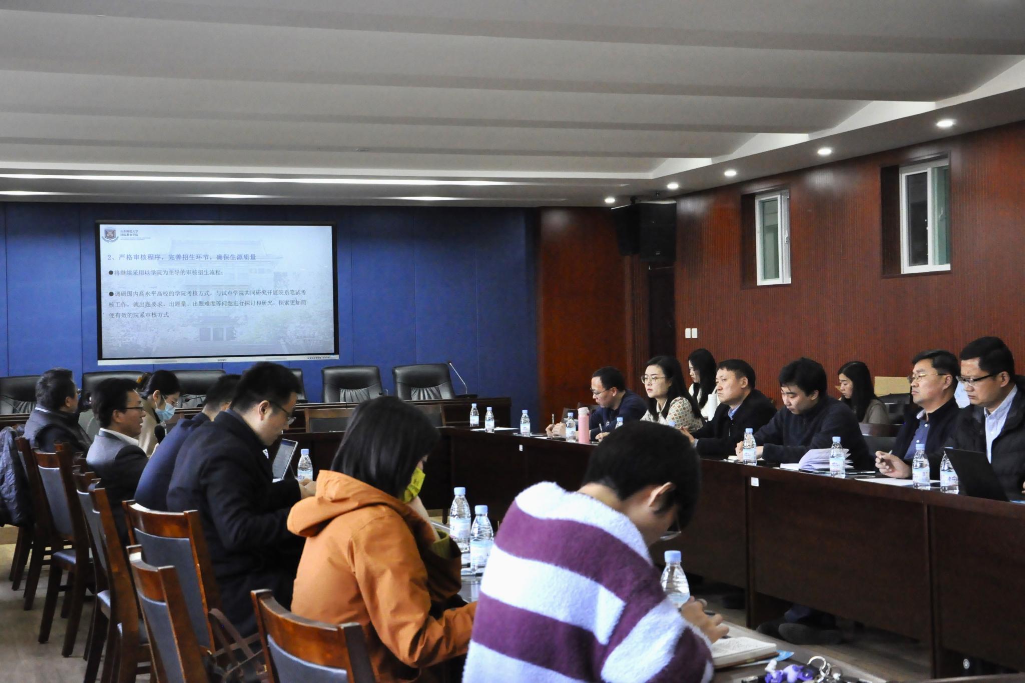 11月14日下午, 2023年学校国际学生招生工作培训会在千佛山校区三号教学楼3546会议室召开。国际交流与合作处副处长尹弢,国际教育学院党委书记刘金凯,国际教育学院院长、留学生工作办公室主任马茂祥,国际学生接收和培养单位分管领导、联络员,留学生工作办公室全体工作人员参加会议。