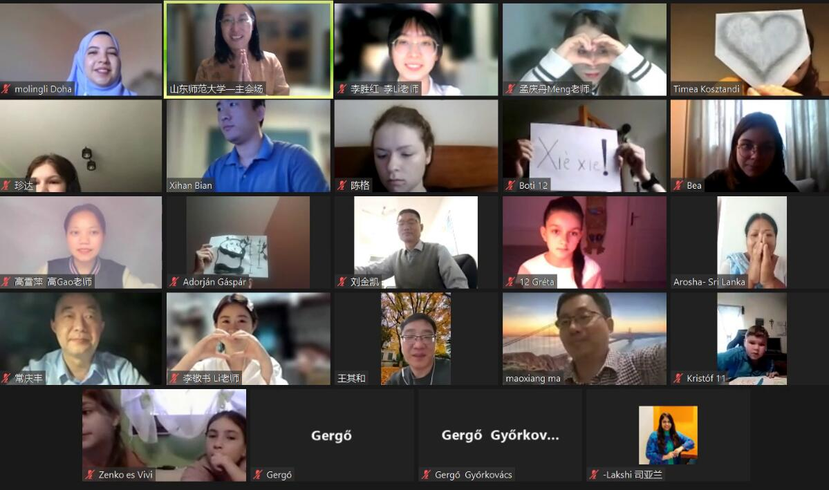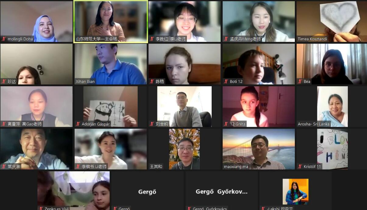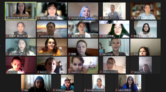 经过七周的学习交流,山东师范大学国际教育学院院长马茂祥、党委书记刘金凯、副院长王其和、留学生教育系主任常庆丰、项目负责人郭文娟、罗马尼亚的项目负责教师提米、埃及亚历山大大学教师莫伶俐、特邀嘉宾斯里兰卡妈妈Amma、项目教师及助教们与罗马尼亚、匈牙利等国的学员们相聚云端,一同见证了冬令营的收官仪式。结营仪式由郭文娟副教授主持。
