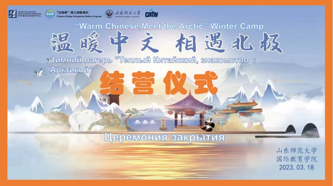 北京时间2023年3月18日18时至20时,由教育部中外语言交流合作中心(简称语合中心)主办,山东师范大学国际教育学院和俄罗斯北方(北极)联邦大学联合承办的2022年“汉语桥”在线团组项目——“温暖中文 相遇北极”语言学习冬令营圆满结营。
