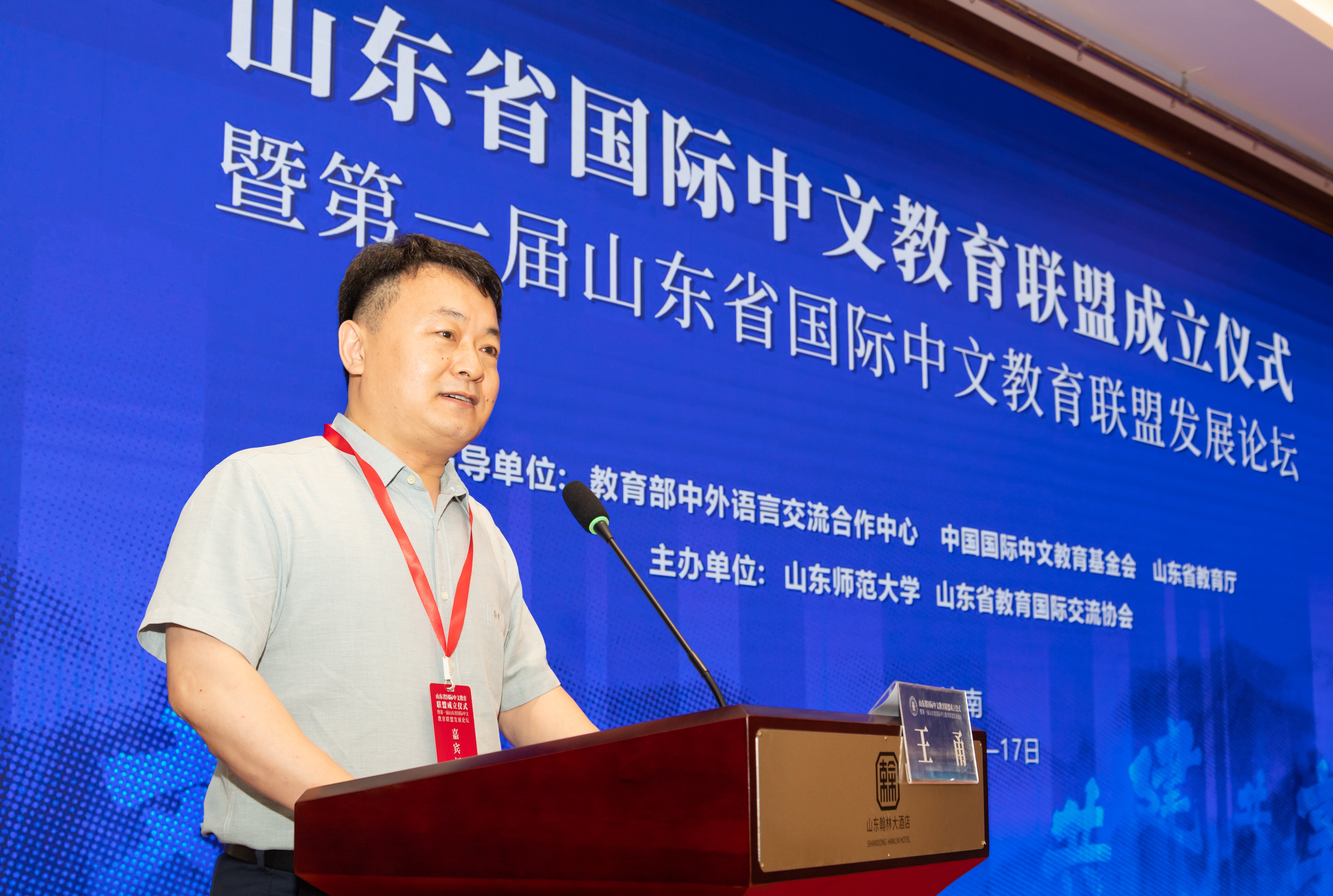 6月15日至17日,由教育部中外语言交流合作中心、中国国际中文教育基金会、山东省教育厅指导,山东师范大学、山东省教育国际交流协会主办的山东省国际中文教育联盟成立仪式暨第一届联盟发展论坛在济南山东师范大学千佛山校区举行。中国国际中文教育基金会副理事长、秘书长赵灵山,教育部中外语言交流合作中心发展规划处处长王甬,省教育厅二级巡视员孙祖兴,山东师范大学副校长郑元杰出席成立仪式发表致辞。山东师范大学国际交流与合作处处长、山东省教育国际交流协会秘书长周连勇主持仪式。来自山东省高等院校、海外孔子学院、海外国际中文学校及其他单位的代表140余人参加会议。