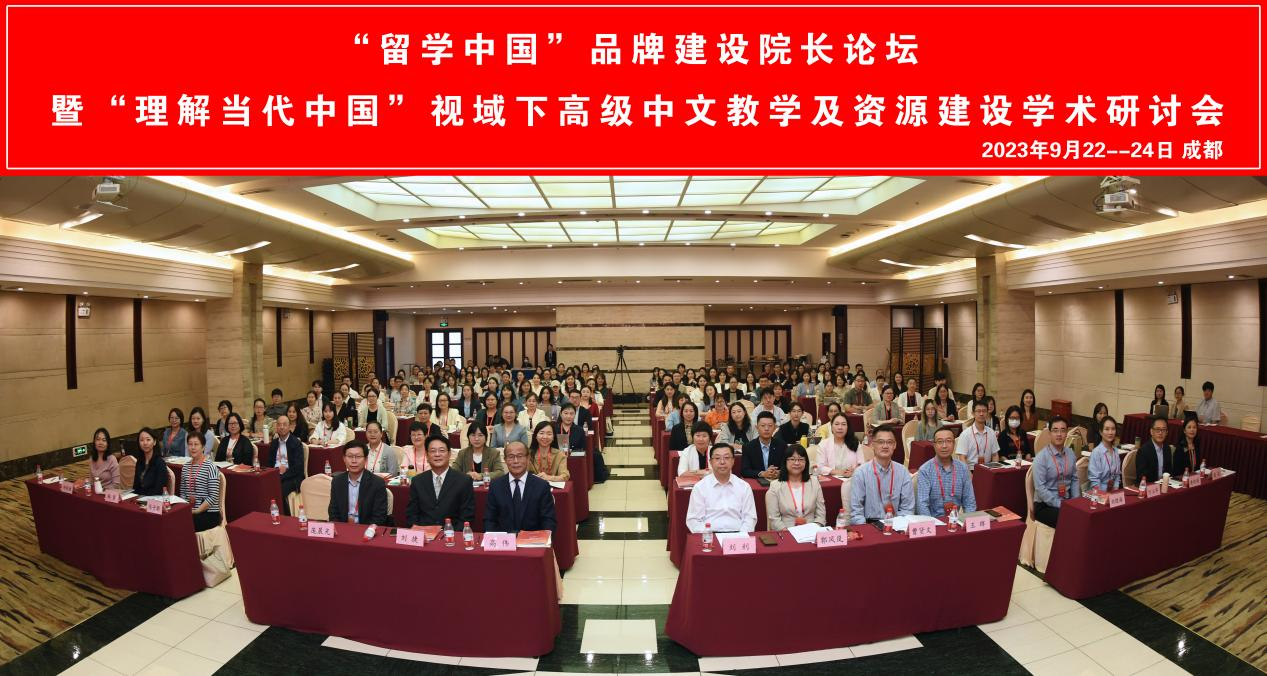 2023年9月22—24日,“留学中国”品牌建设院长论坛暨“理解当代中国”视域下高级中文教学及资源建设学术研讨会在成都举行,研讨会主题为“理解中国 沟通世界”,由“理解当代中国”国际中文系列虚拟教研室、四川大学、北京语言大学和外语教学与研究出版社联合主办,《国际汉语教学研究》《国际中文教育(中英文)》提供学术支持。50多位院系负责人、学科带头人、一线教师交流了系列教材与课程的使用体会和教学心得,来自全国70所高校的170多位师生代表参加了会议。