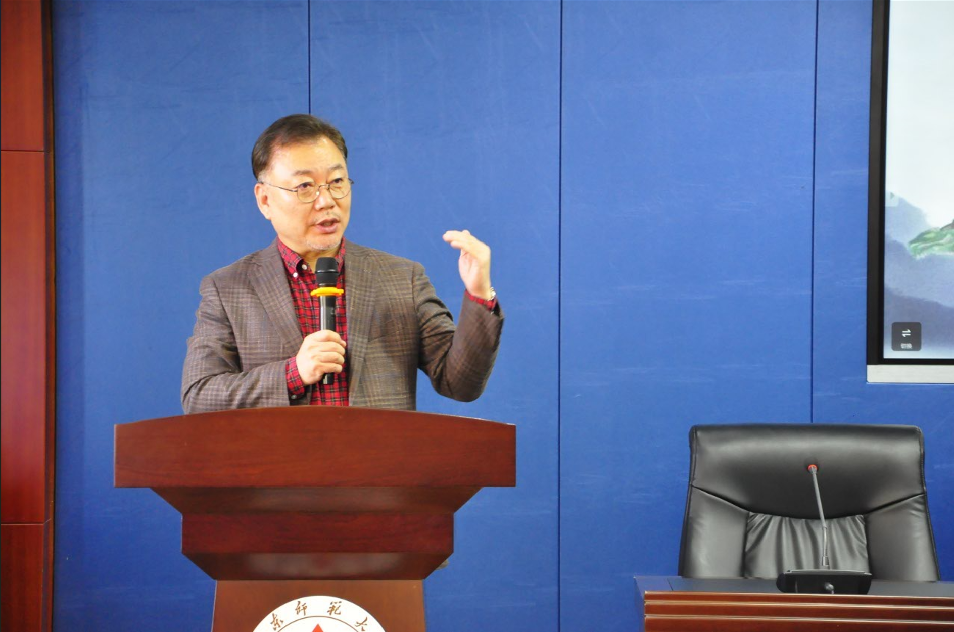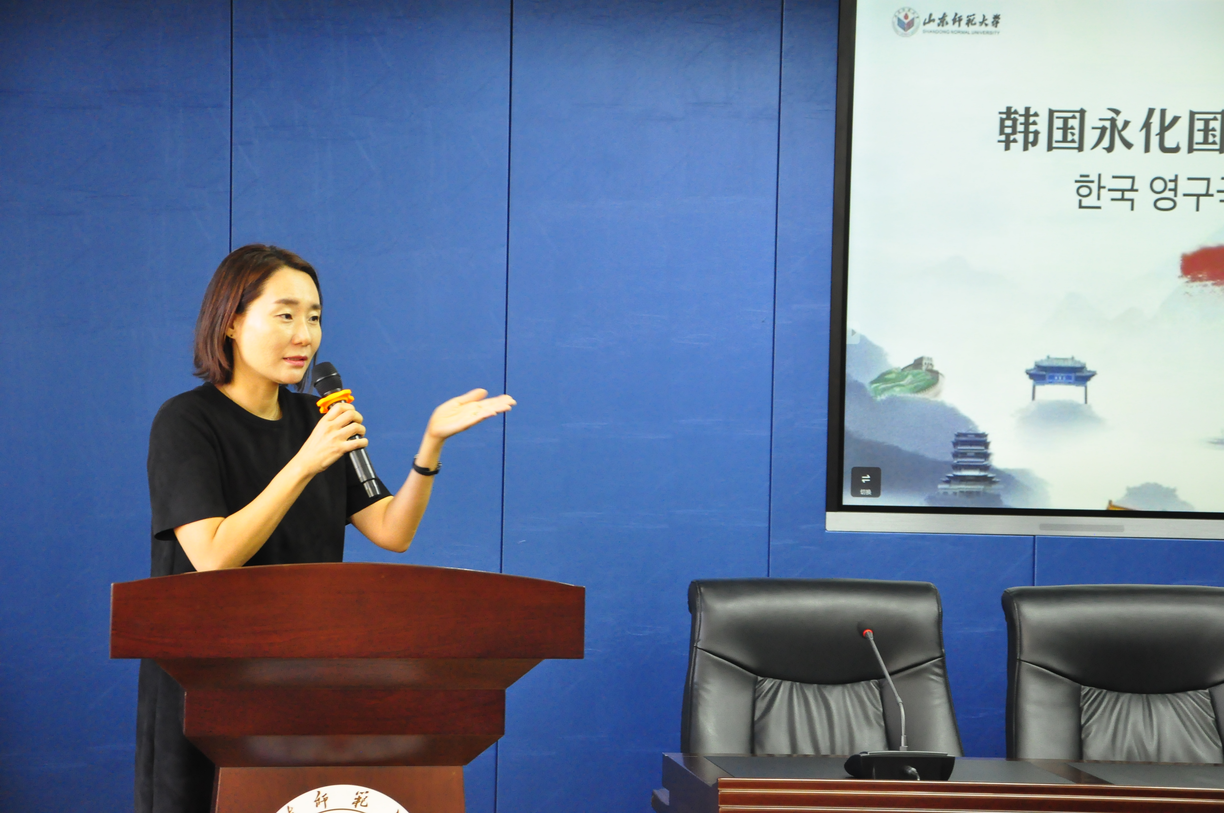 山东师范大学国际教育学院党委书记刘金凯在致辞中表示中韩两国在政治、经济、文化等领域保持着良好合作和交往,此次短期团的到访,也正是两国文化深入交流的真实写照。韩国永化国际观光高等学校校长李賢峻首先向中方的热情接待表示感谢,他肯定了汉语在中韩交流中的重要性,并表示今后韩国永化国际观光高等学校将会更加重视汉语教学,并预祝这次研学活动一切顺利。中韩文化教育交流中心--星星China代表李知娟女士表示和山东师范大学的合作一直很愉快,随着疫情的结束,很高兴赴中国研学的活动开始恢复,她对未来的合作充满信心,同时她也叮嘱同学们在中国的这一周要好好学习,多多体验。参与此次授课的国际教育学院教师代表从整体上介绍了此次研修活动,并鼓励同学们在这次研学活动中,多看、多听、多尝试、多体验。