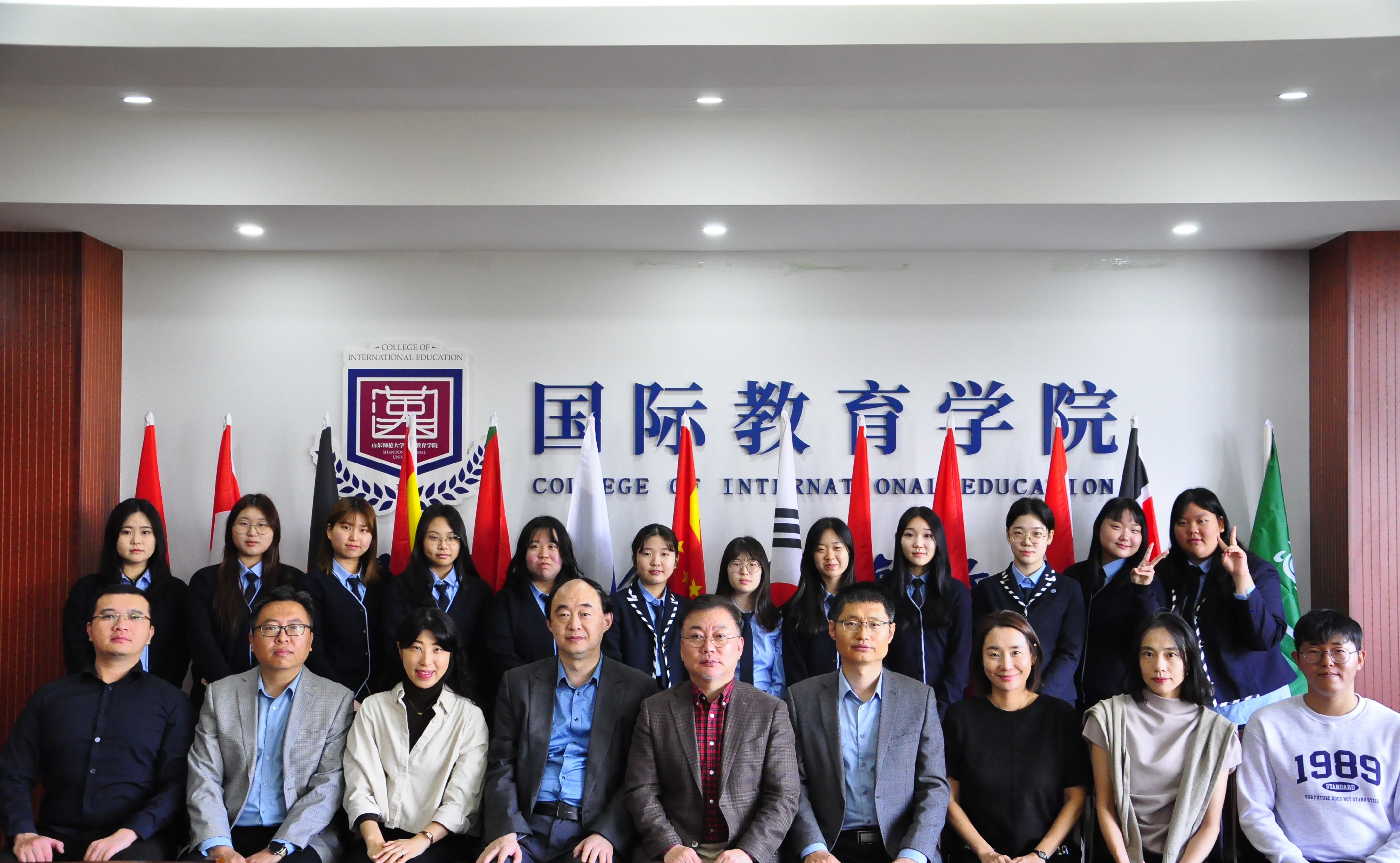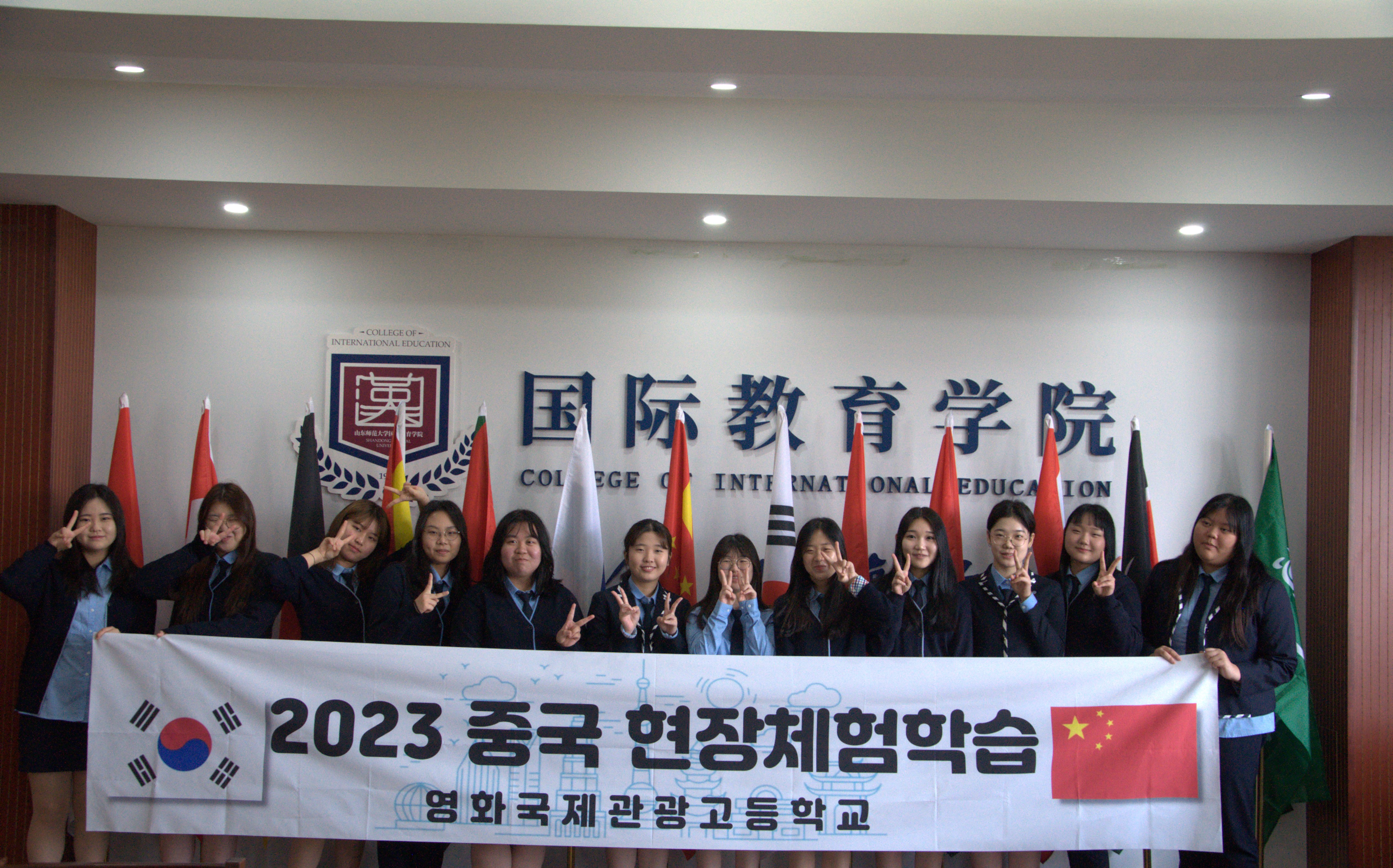 2023年10月23日上午,韩国永化国际观光高等学校短期团开营仪式在山东师范大学国际教育学院顺利举行,山东师范大学国际教育学院党委书记刘金凯、留学生教育系主任常庆丰、留学生工作办公室副主任刘峰,韩国永化国际观光高等学校校长李賢峻、汉语教师金美惠、崔相鎔以及中韩文化教育交流中心--星星china代表李知娟等出席开班仪式,一同出席仪式的还有12名来自韩国的同学以及中方志愿者。此次会议由国际教育学院教师马建斌主持。