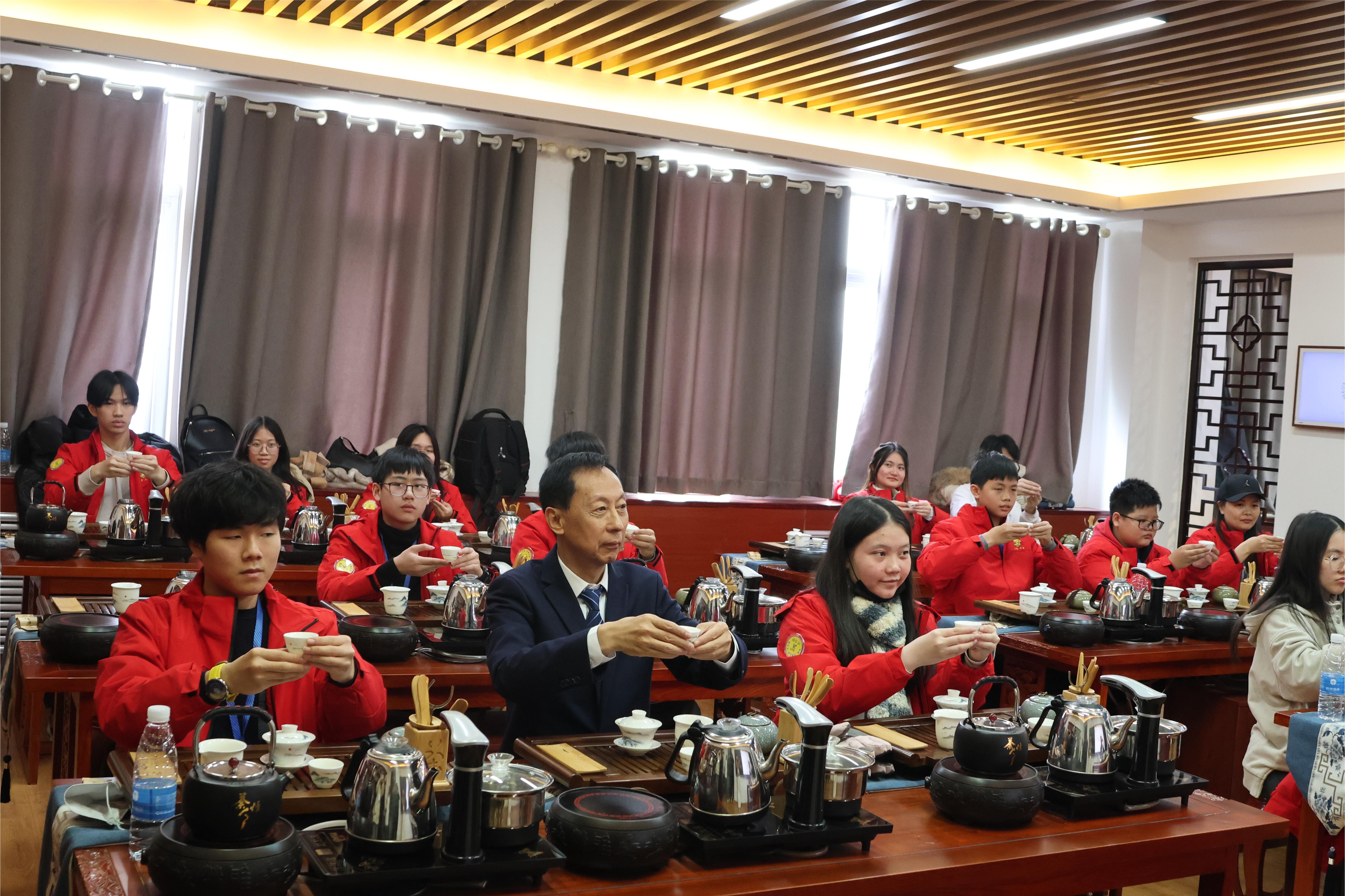 仪式结束,各位嘉宾与学生到学院文化体验室亲身体验中华传统茶艺、剪纸、书法的魅力。