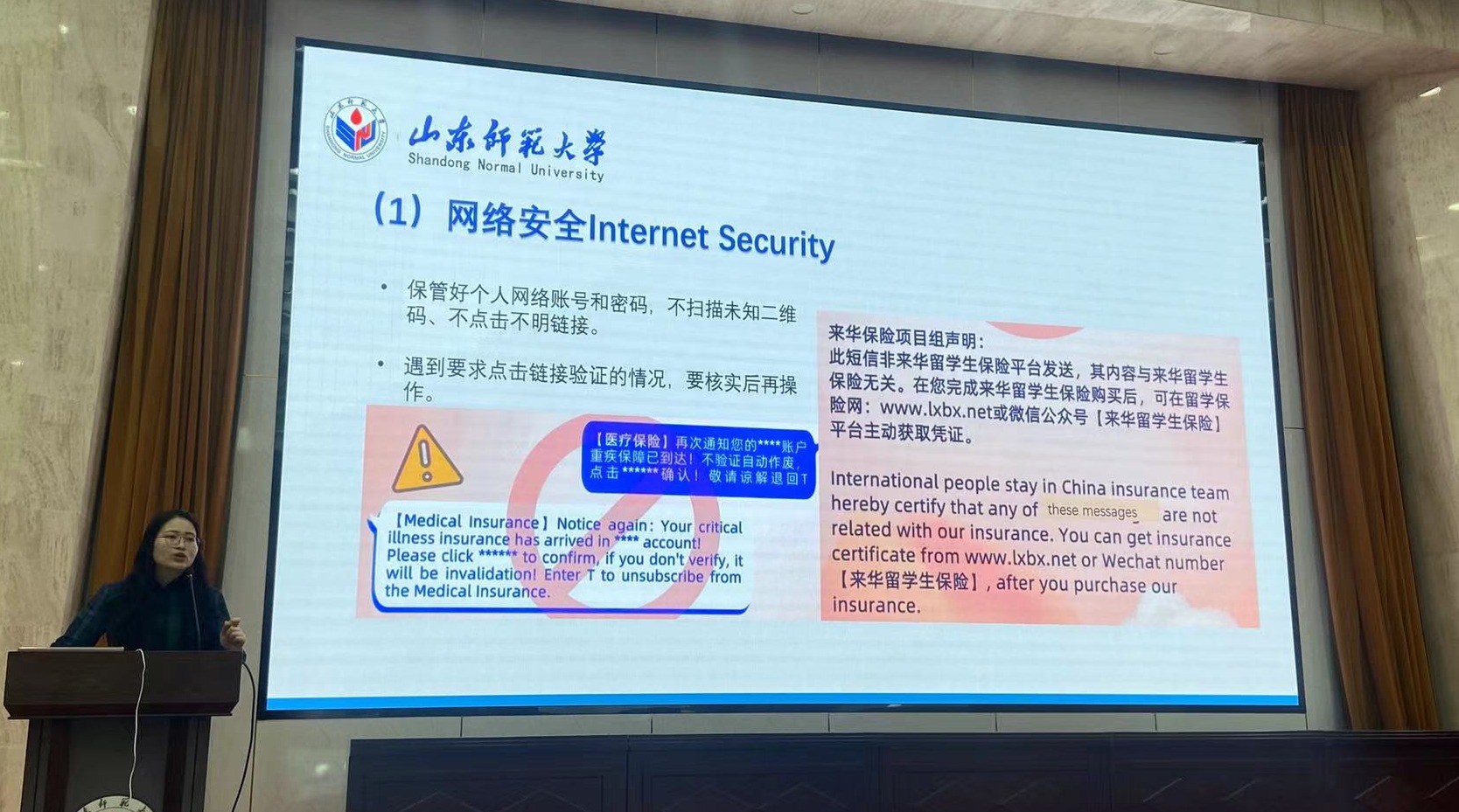 济南市出入境管理局外国人管理科科长刘芬,一级警长于洋,山东师范大学国际教育学院院长、留学生工作办公室主任马茂祥,国际教育学院党委书记刘金凯及国际学生工作相关人员参加本次活动。