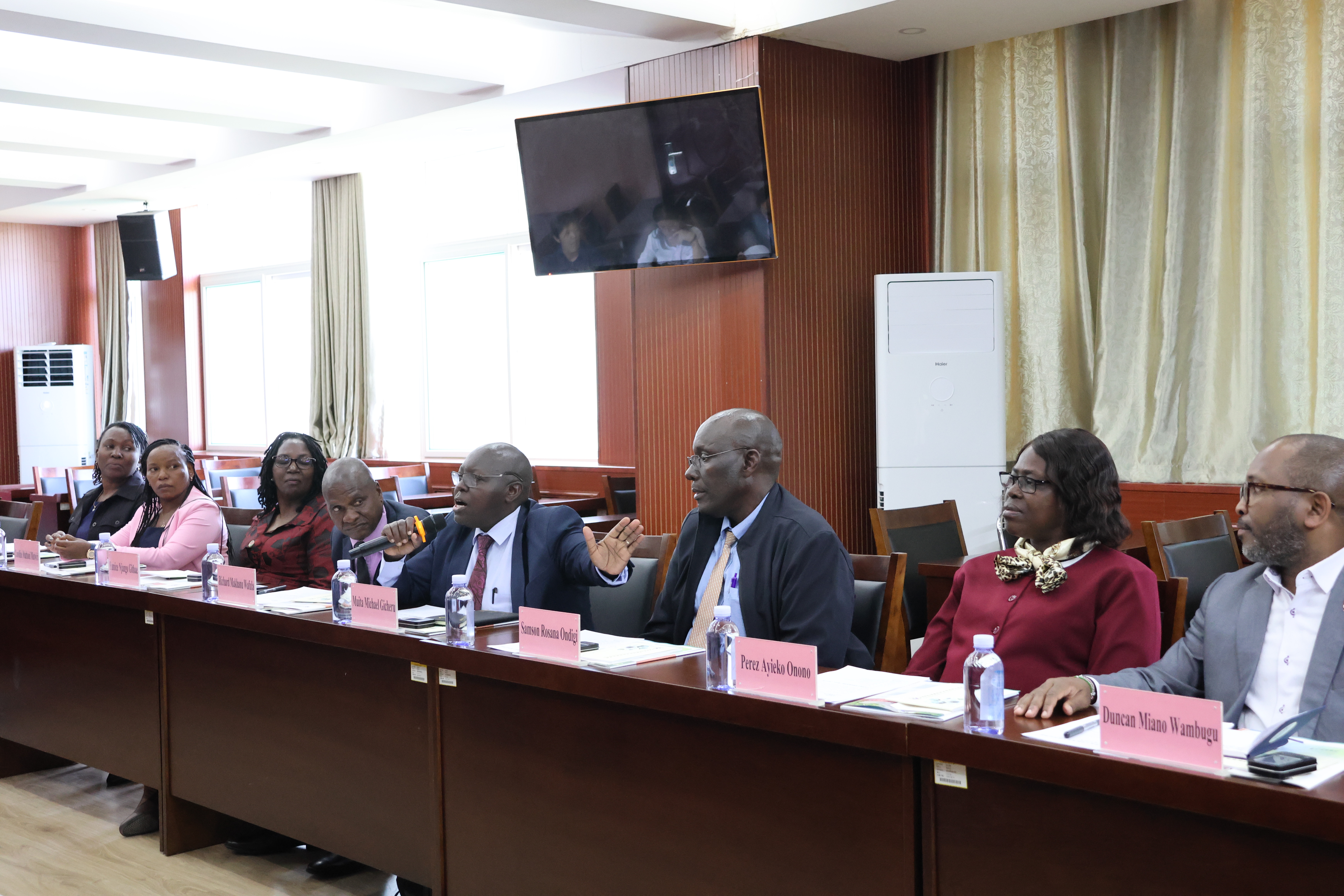 访华团团长穆伊塔·迈克尔·吉切鲁、肯雅塔大学教育与终身学习学院副院长萨姆森·罗萨纳·翁迪吉和肯雅塔大学孔子学院外方院长萨洛梅·尼扬布拉·奥温约等分别致辞。他们详细介绍了肯雅塔大学的悠久历史以及孔子学院在肯雅塔大学的建立和发展情况。他们表示,肯雅塔大学孔子学院作为中肯文化交流的重要桥梁,一直致力于推广中文教育和中国文化,为中肯两国的友好交往做出了积极贡献。对我院在国际教育领域的成就表示高度赞赏,并表达了进一步加强合作的愿望。
