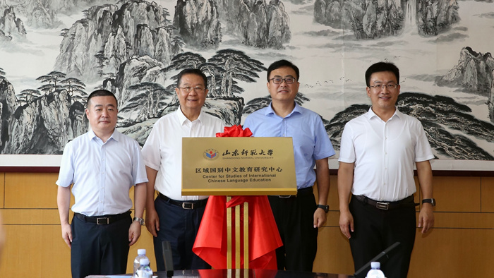 在随后举行的调研座谈会上,与会领导为国际教育学院“山东师范大学区域国别中文教育研究中心”揭牌。
