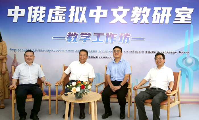 刘利民一行参观了中俄虚拟中文教研室,并在线与克里米亚联邦大学娜斯佳老师等俄方本土中文教师、虚拟教研室俄方负责人玛利亚教授等进行了亲切交流。虚拟中文教研室主持人郭文娟副教授、部分教师和俄罗斯留学生现场回答了刘利民会长提出的问题,介绍了中俄虚拟中文教研室的发展目标和工作方式。刘利民会长高度赞扬虚拟教研室项目的设计理念与工作成效,希望虚拟教研室扩大影响,持续高质量发展,形成样板效应。在虚拟教研室交流之后,刘利民会长一行前往赫尔岑国际艺术学院,实地察看了学院的教学情况,并与俄方教师就人才培养和专业发展等问题进行了探讨。在齐鲁文化研究院,参观了成果展陈室和古砖陈列室,详细了解了齐鲁文化研究院在基地建设方面取得的成就。