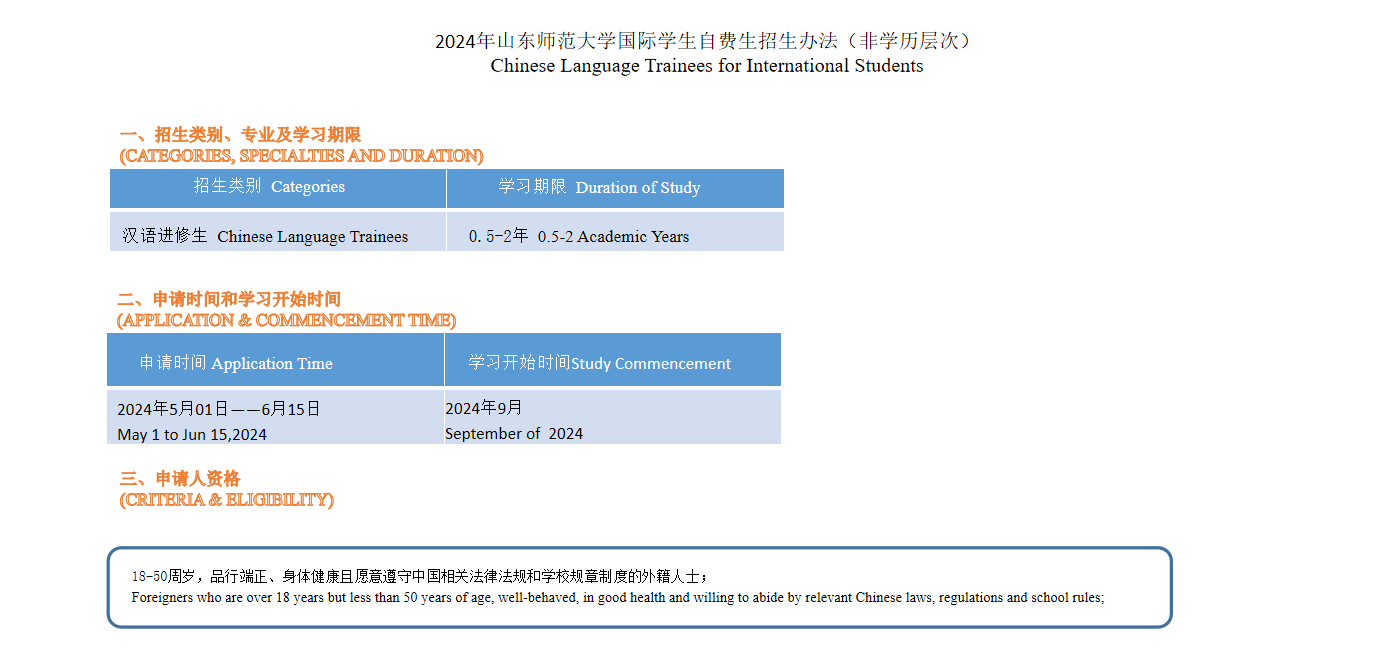 2024年山东师范大学国际学生自费生招生办法(非学历层次)