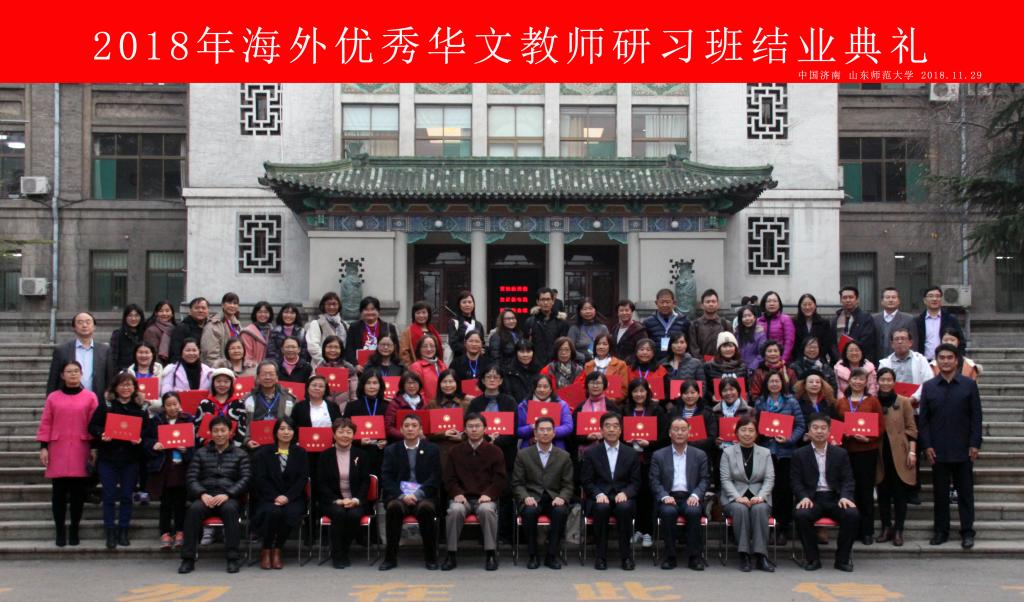 11月29日下午,2018年“海外优秀华文教师”研习班结业仪式在山东师范大学千佛山校区文化楼四层会议室举行。中央统战部华文教育发展中心副处长王匡...
