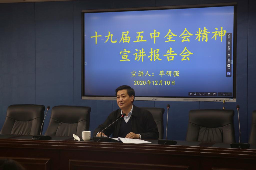 12月10日下午,在教学三楼3534会议室,校党委办公室主任毕研强为我院师生宣讲十九届五中全会精神。学院部分教职工党员、全体学生党员、入党积极...